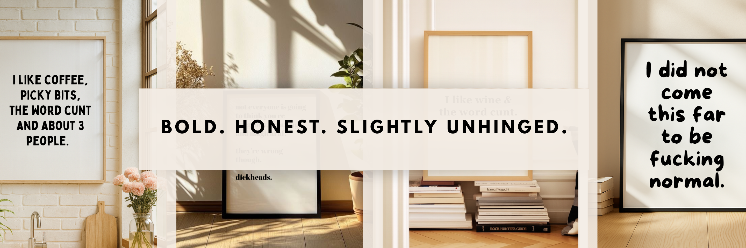 At PRINTD image, we don’t just create wall art. We create pieces that talk back, stir something, make you laugh, make you feel seen or make your visitors wonder if they should take their shoes off. Our collections are crafted for real homes and real moods – the bold ones, the soft ones, the sweary ones, and the quietly beautiful ones.