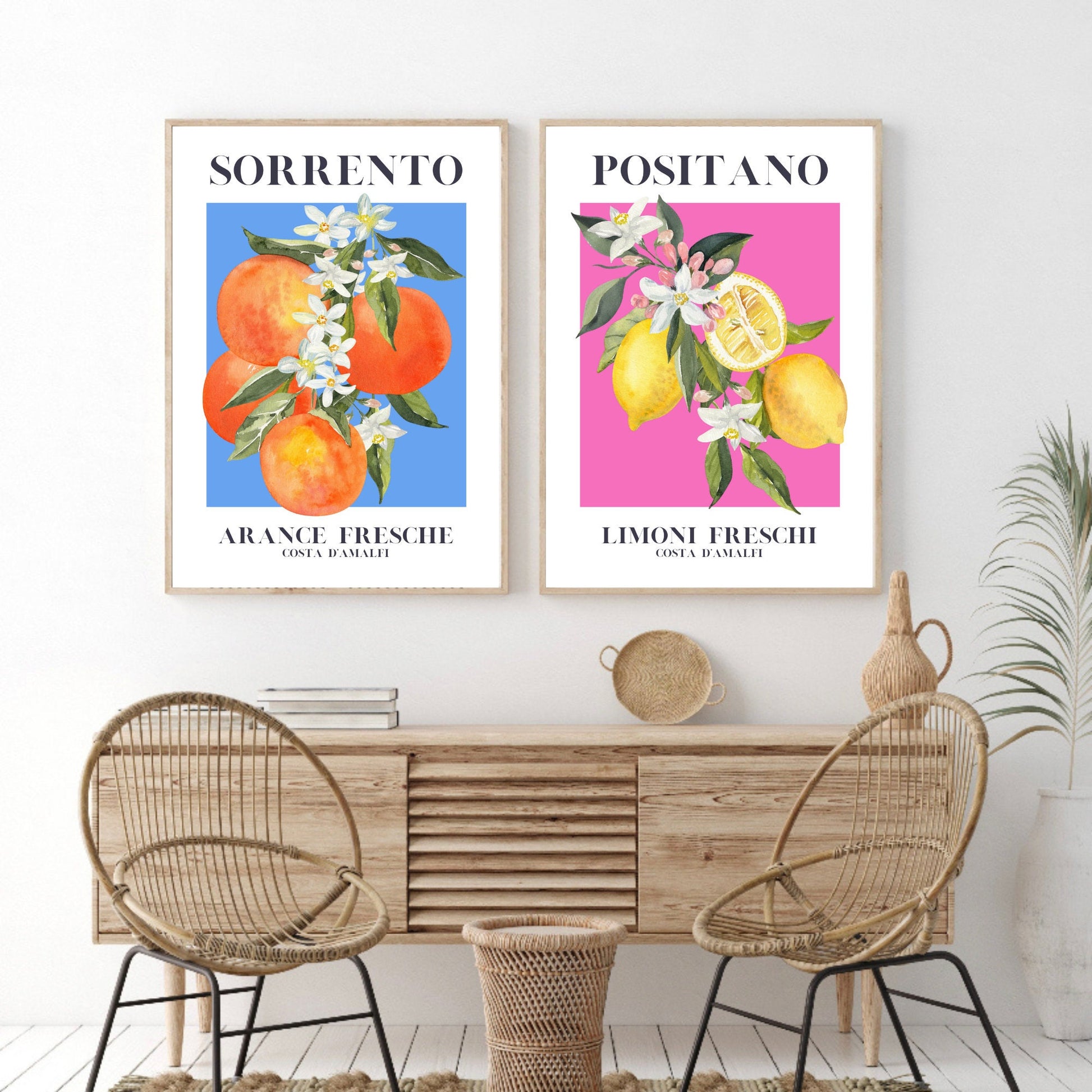A sunny little duo inspired by the Amalfi Coast, blending ripe Sorrento oranges and fresh Positano lemons in soft, modern colour blocks. These two prints bring that effortless Italian charm into your home, adding a fresh pop of colour that suits kitchens, dining spaces and cosy living corners. A lovely choice for anyone who adores Mediterranean décor, vibrant fruit art or travel-inspired wall prints. They also make an easy, thoughtful gift for those who dream of Italy and long summer days by the coast.