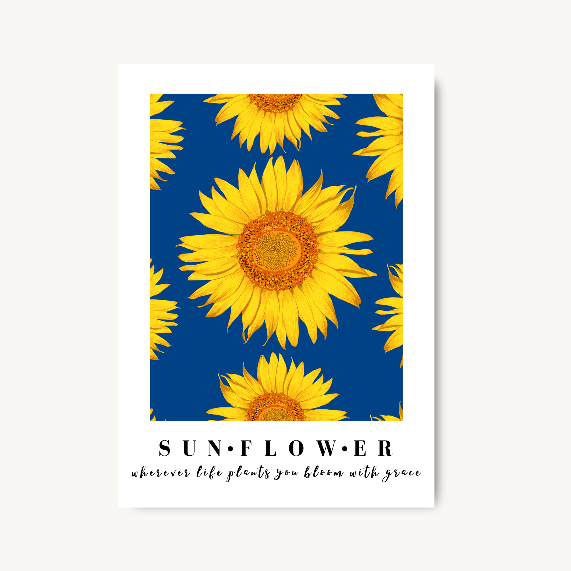 Bring sunshine indoors with the Sunflower Bloom Print, a bold and uplifting piece that celebrates warmth, growth, and optimism. The vibrant yellow petals set against a striking cobalt blue backdrop make this design pop — perfect for adding a joyful, modern touch to any space.