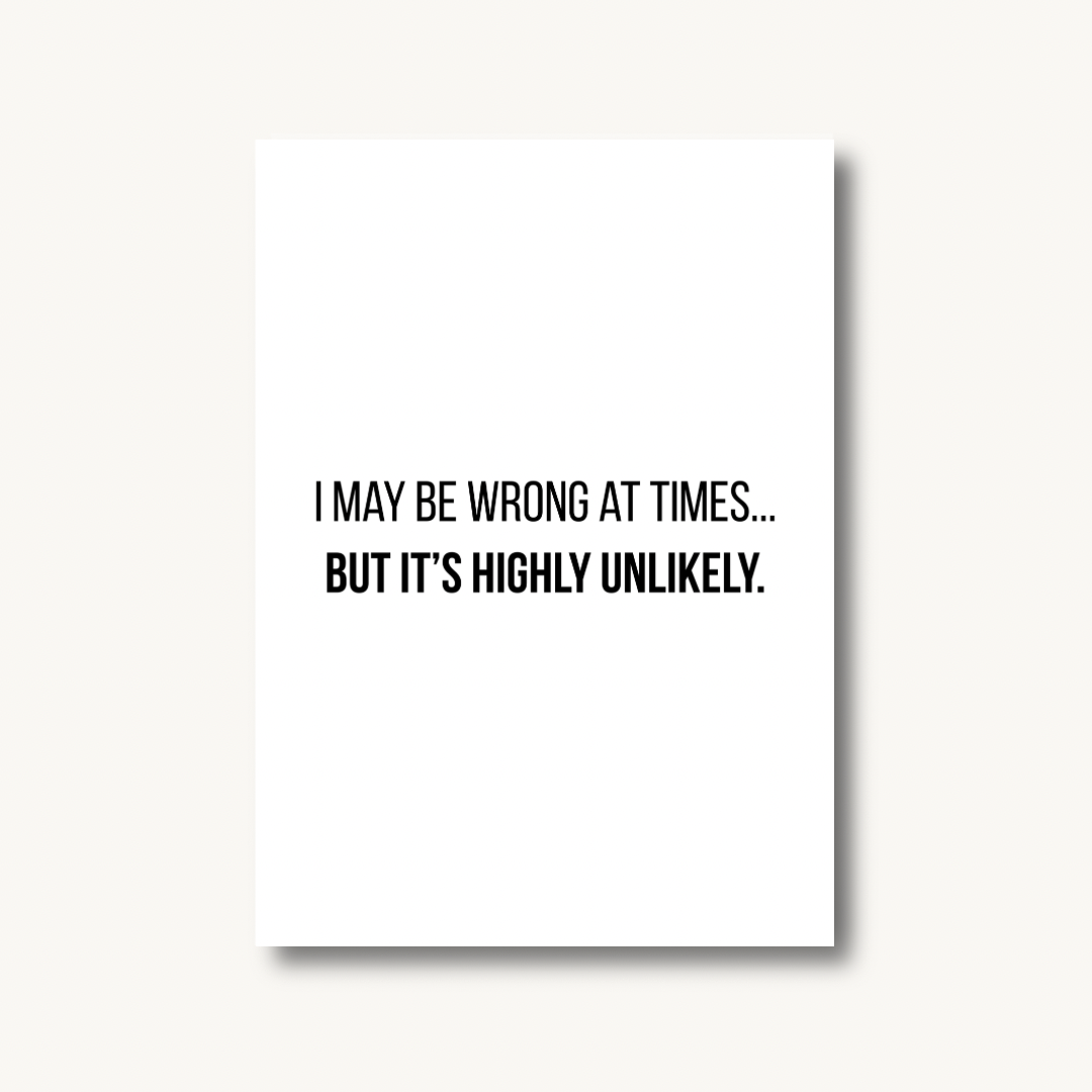 A sharp, humorous quote print for anyone who knows their instincts are usually spot on. The clean, minimal design keeps it stylish, while the bold statement brings the perfect mix of confidence and sarcasm. Ideal for adding personality to an office, hallway or any space that needs a little truth wrapped in humour.