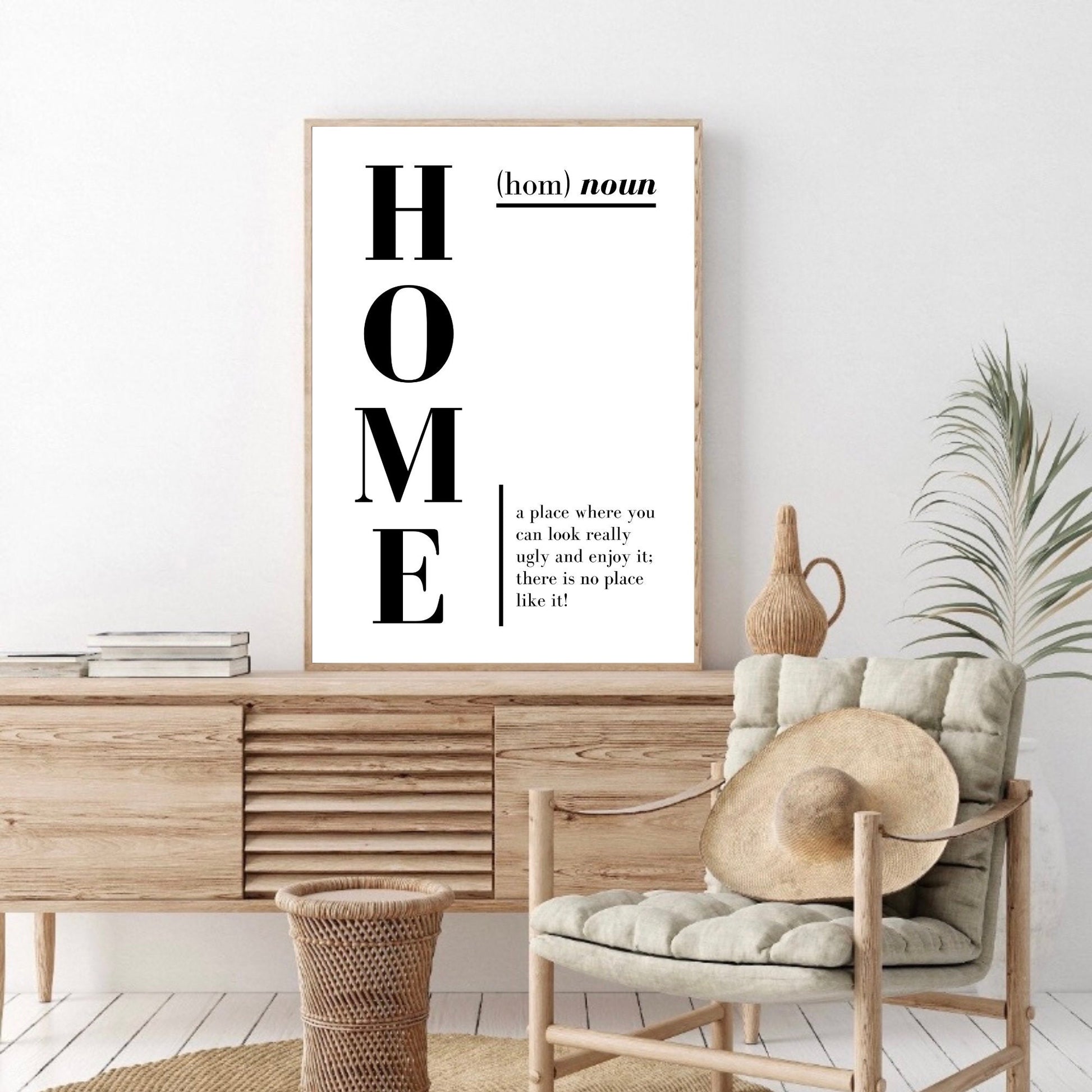 Turn the cosy chaos of real life into wall art with this modern HOME definition print. Clean, minimalist typography meets a cheeky, relatable meaning: a place where you can look really ugly and enjoy it; there is no place like it. A perfect blend of humour and style for hallways, living rooms and any space that deserves a little personality.