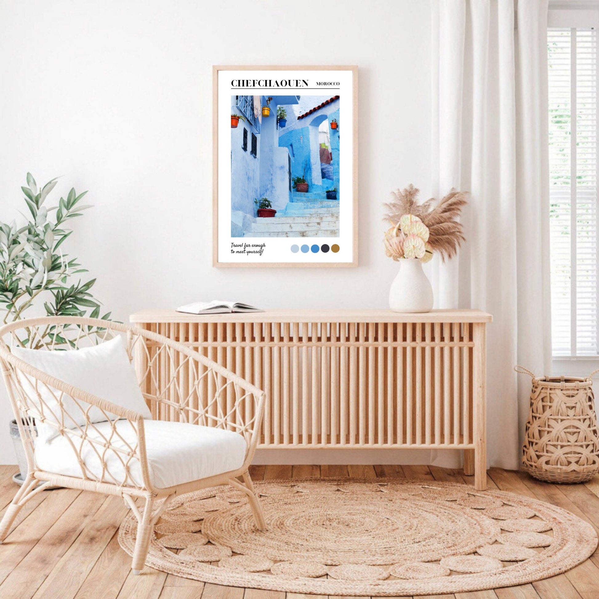Sink into the calming blues of Chefchaouen with this dreamy travel print, capturing the charm of Morocco’s famous “Blue City.” From sunlit steps to colourful pots tucked along the walls, every detail brings that soft, wanderlust-soaked magic straight into your home.
