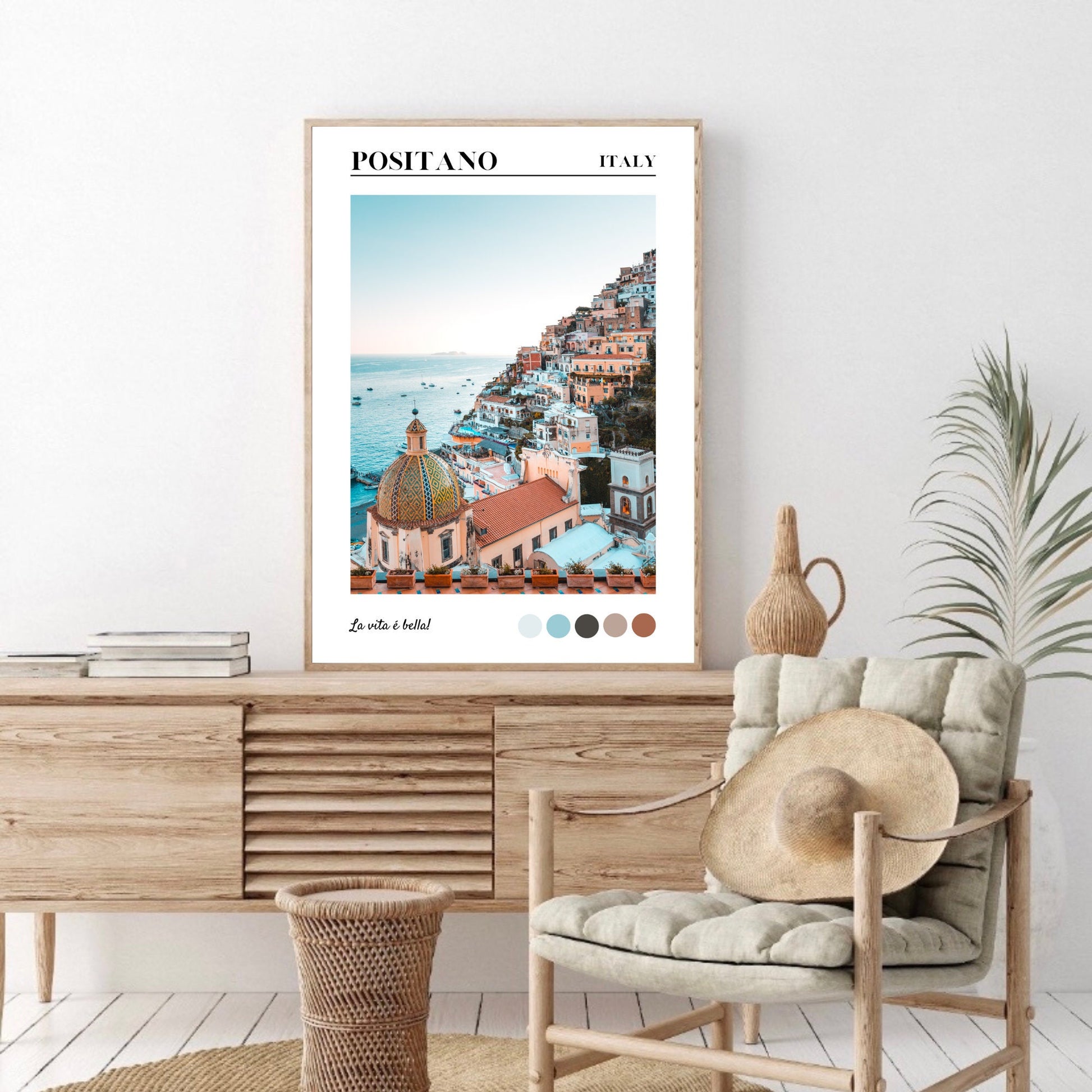 Bring a slice of the Amalfi dream straight into your home with this Positano travel art print. Soft coastal blues, sun-kissed terracotta tones and that iconic cliffside view make this piece feel like an instant holiday. Perfect for adding a serene, wanderlust-filled touch to bedrooms, living rooms, hallways or gallery walls.