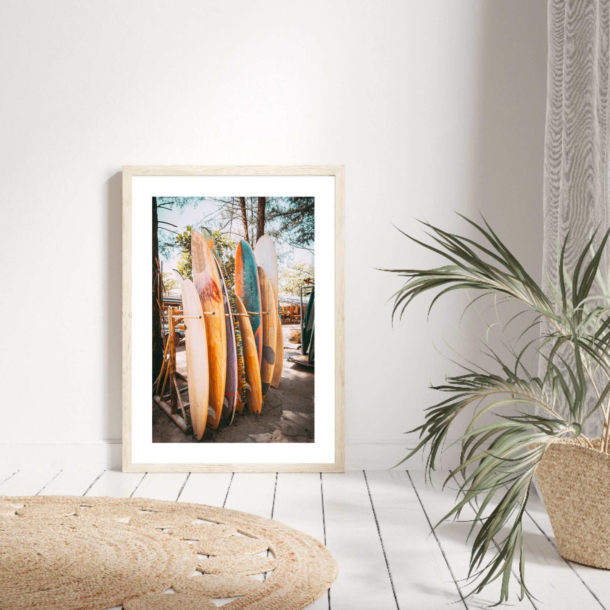 Bring a little beach-day magic into your space with this sun-kissed surfboard photography print. Warm tones, natural textures and that lived-in coastal vibe make it the perfect piece for anyone who dreams in waves and sunsets.