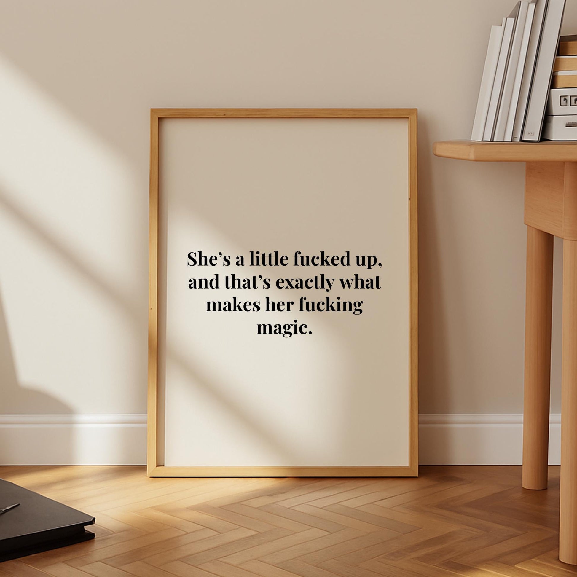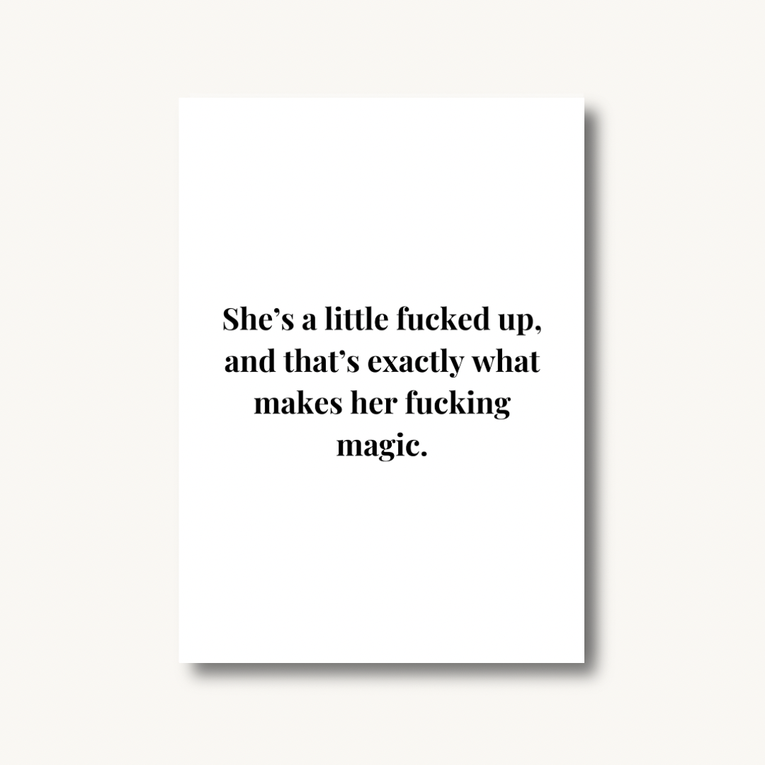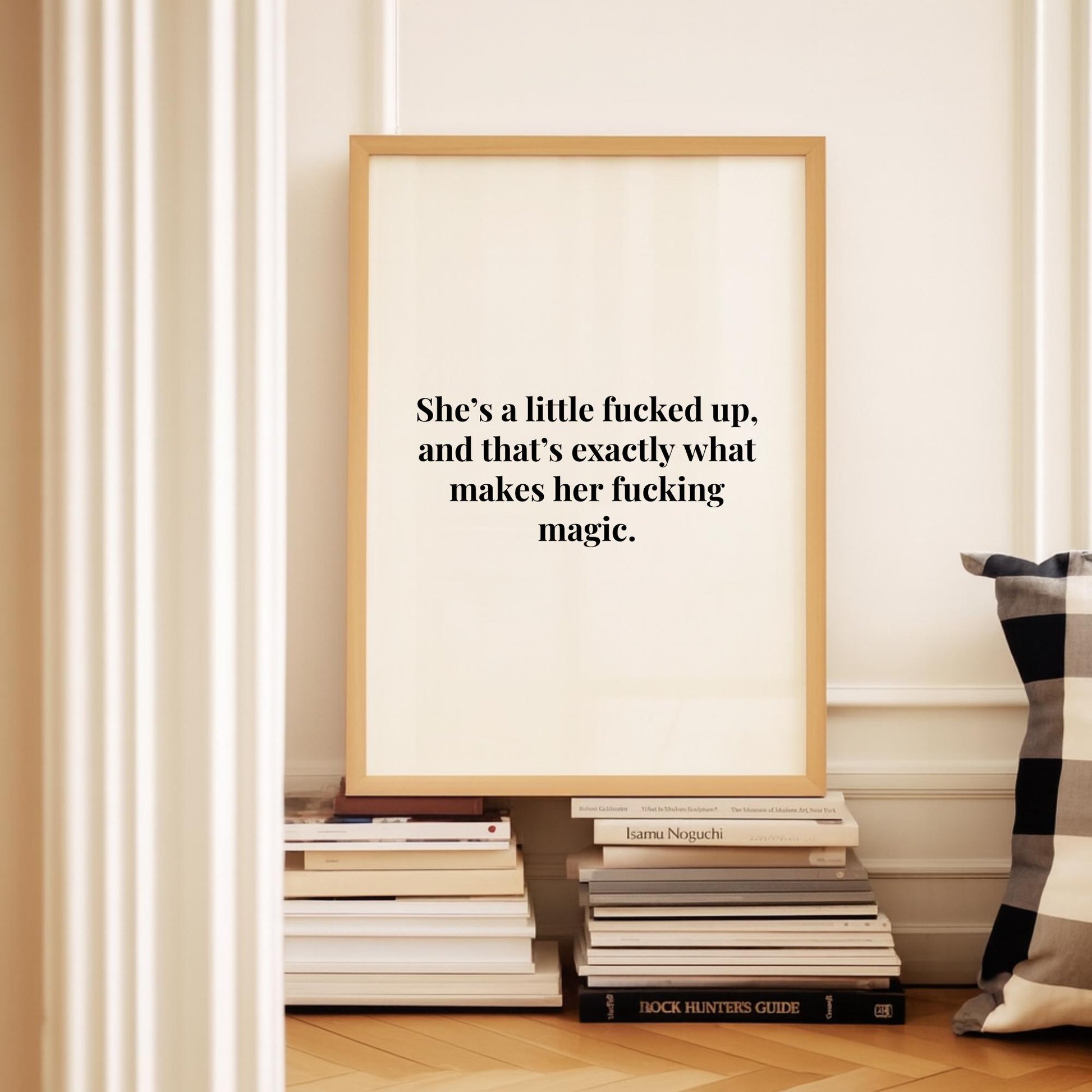 A bold, empowering typography print for the ones who own their chaos and still sparkle anyway. This unapologetic statement piece brings attitude, honesty and a whole lot of confidence to your gallery wall. Perfect for bedrooms, dressing areas or anywhere that needs a reminder that imperfect and powerful can happily coexist. Printed on premium, crisp white paper for a modern, minimalist finish.